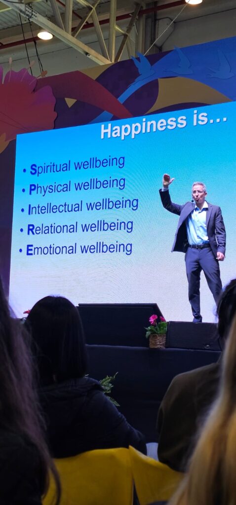 Durante sua palestra, ele apresentou o modelo SPIRE, uma estrutura que integra cinco dimensões fundamentais do bem-estar humano: